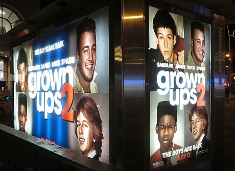 I didn’t pay attention to my invite for the Grownups 2 all-media, and therefore missed the fact that it screened at 5 pm instead of the usual 7 or 7:30 pm. So I missed out — big loss. The movie apparently smells, but Andrew Barker‘s Variety review (“Among the slackest, laziest, least movie-like movies released by a major studio in the last decade”) is a classic. It’s probably funnier than the film.