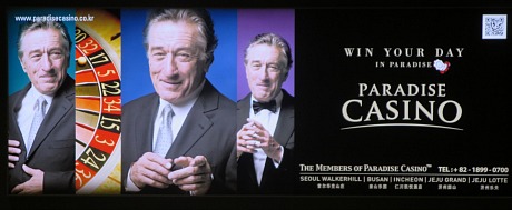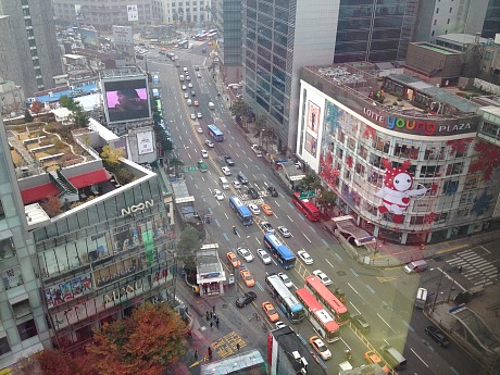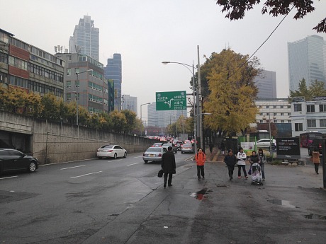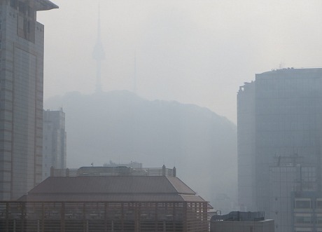 | Seoul, New Jersey Nov 15th 2013, 03:10, by Jeffrey Wells I landed at Seoul’s Incheon Int’l Airport just after 6 am this morning (or around 1:02 pm L.A. time), and I’m on the plane to Hanoi tonight at 6:40 pm. Seoul is all about traffic and ugly buildings and smog for the most part. At first the milky stuff in the air seems like drizzly, standard-issue morning smog but by noon it looks and feels like the radioactive fallout in Stanley Kramer’s On The Beach. My first impression of Seoul is mainly one of grimness, to be honest. It’s a combination of Newark, Milwaukee, Pittsburgh and the soulless parts of Tokyo (another city that I’m not enamored of). When they built Seoul they forgot to think about trying to make it attractive. The first thing I saw when I got out of customs was a big Paradise casino poster featuring the smiling faces of Robert “anything for a buck” De Niro. I’m trying to post this as quickly as possibly so I can wander around for two or three hours and take some more photos. I even bad experience trying to get free wifi in a Starbucks here. The software asked for personal info which I quickly provided, and then it turned around and said “sorry, fuck you, no wifi.” Seoul not my idea of a municipal turn-on. I’ll probably never return here.  An honest, unexaggerated shot of Seoul Tower, taken at 11:40 am. |